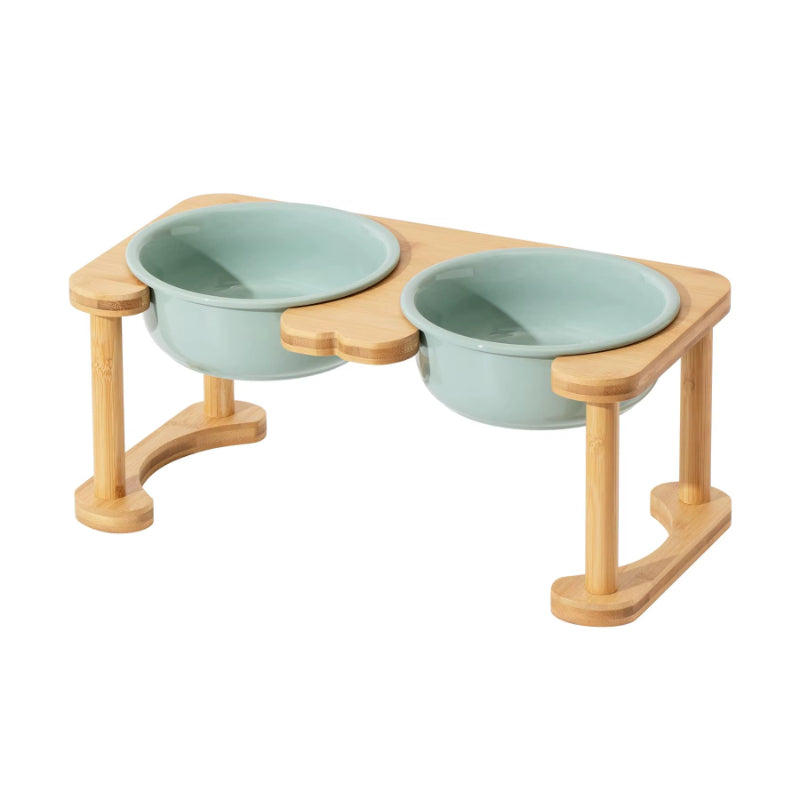 Διπλό Κεραμικό Μπολ Raised με Βάση Bamboo – Ανοιχτό Λαδί